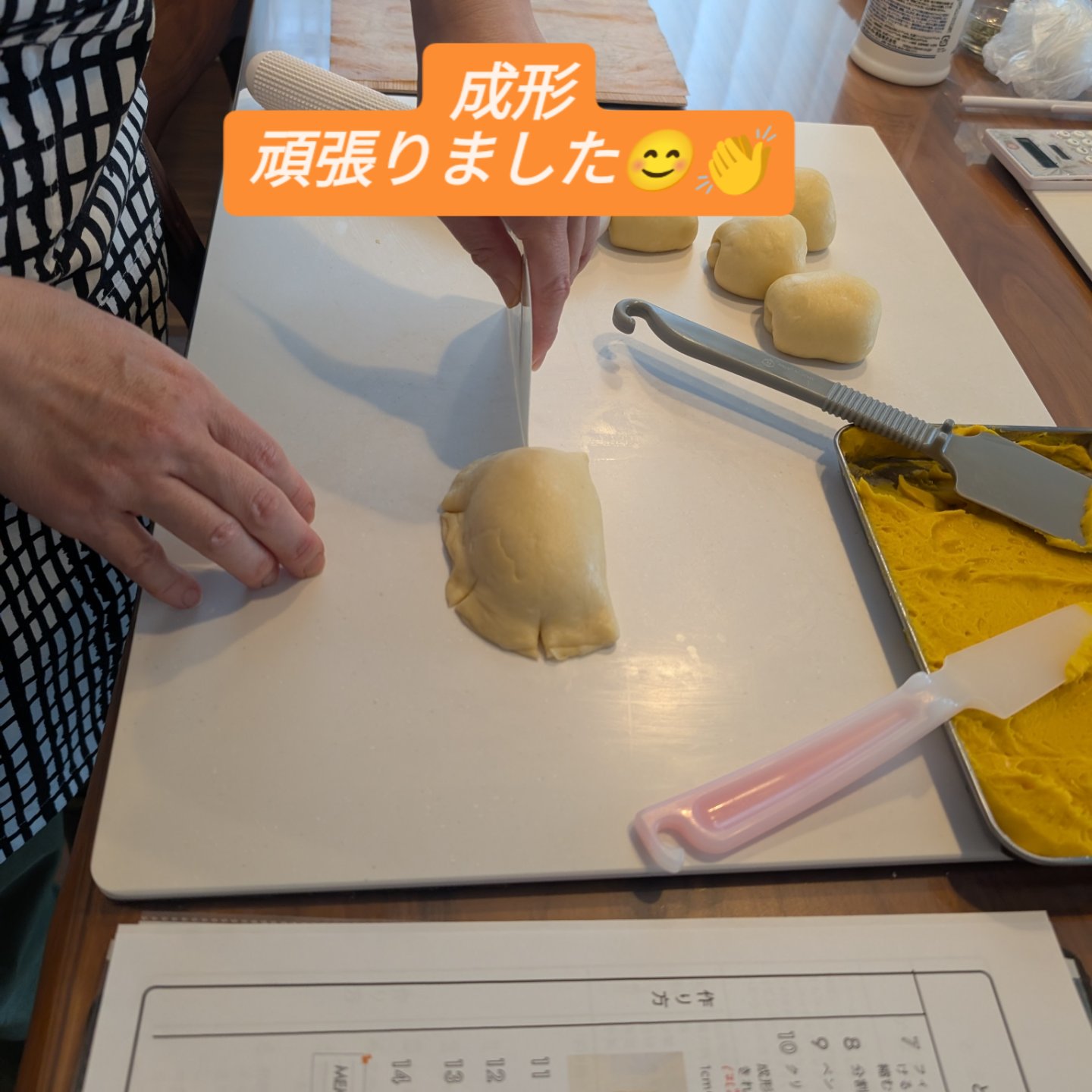 「かぼちゃクリームパン」をKさんと一緒に焼きました。
